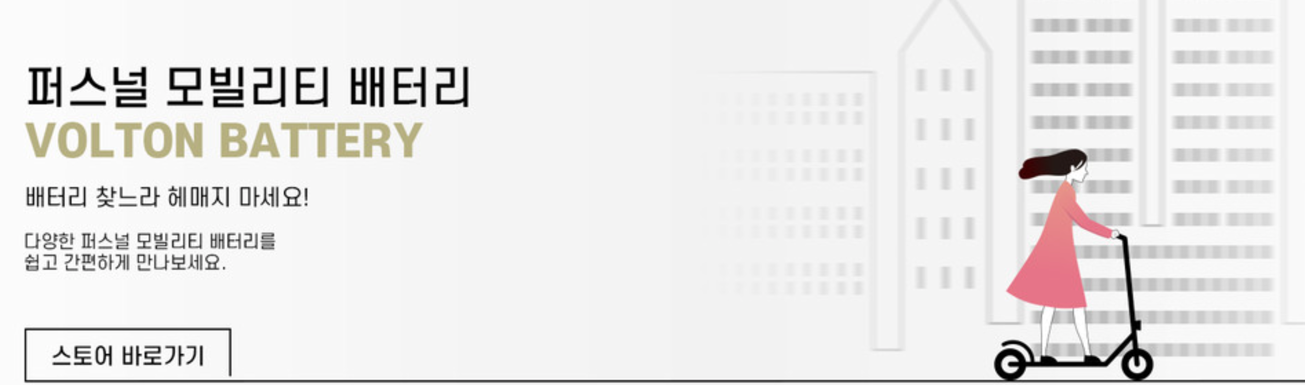 볼턴 배터리 쇼핑몰에서는 전동킥보드, 전기자전거, 전동스쿠터 등 퍼스널 모빌리티에 사용되는 리튬이온 배터리를 판매 하고 있습니다.