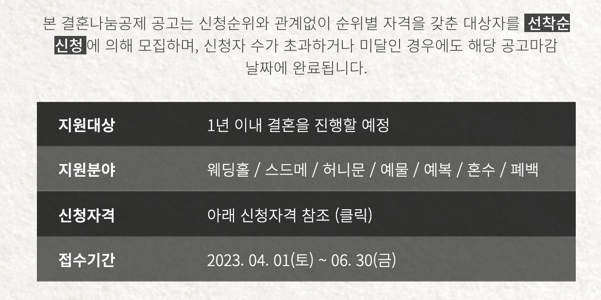 예비신랑,신부의 결혼비용을 지원하고, 소규모 결혼식부터 예식장까지 결혼준비 정보를 제공하며, 결혼을 지원하는 센터입니다.
